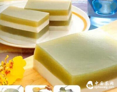 抹茶椰奶凉糕材料:(1)绿豆粉30克,淀粉10克,澄粉10可,冷水120克(2)椰浆120克,鲜奶230克,砂糖80克(3)抹叉粉2大勺,冷水460克