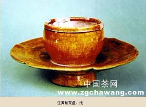 这件茶盏、托出土于河北宣化。辽代张世古墓。张世古葬于辽大安四年(公元1088年),表明该器件属于辽代晚期作品。辽黄釉盏、托,由