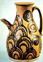 唐釉下彩执壶这件釉下彩执壶,出土于1975年湖南省望城县长沙窑址,属晚唐至五代制品。现珍藏于湖南省博物馆。长沙窑釉下彩执壶,