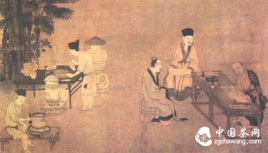 斗茶又称为茗战,发源于福建建安一带,始现于晚唐,到宋代达到顶盛,上至宫廷,下达民间,普遍有斗茶的习俗。斗茶是品评茶叶质量