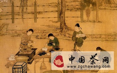 点茶法的出现是宋代饮茶的特点,有别于唐代的煮茶。点茶一词多见于宋人笔记,关于宋代的点茶图见于南宋刘松年《茗园赌市图》,图
