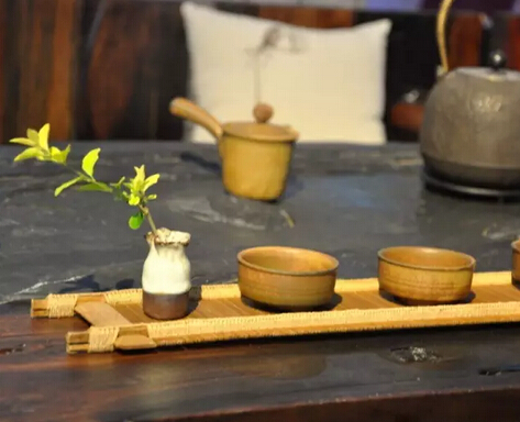 1、茶席布置简单无需奢华,但需洁净,不使用的器具尽量在桌面以外,如为干泡,必须出现在桌面的渣方(水盂),应尽量放置在顺手,