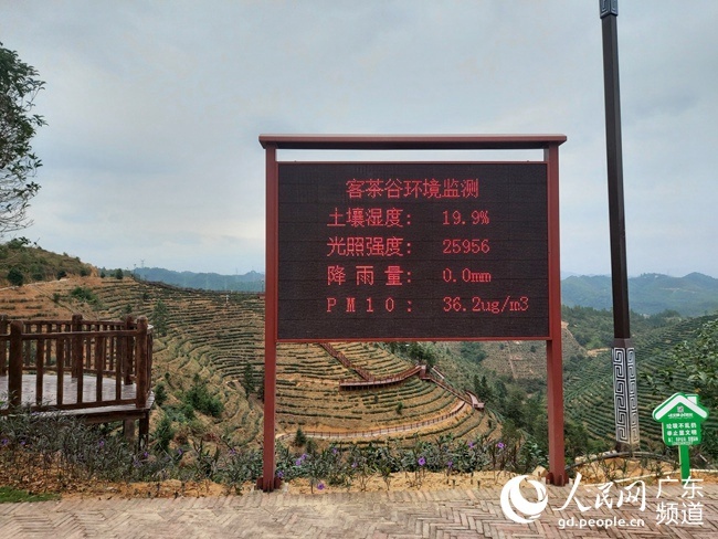 山路蜿蜒,青山环绕。走进位于紫金县紫城镇蓝坑村的“紫金客茶谷”,一块环境监测电子屏幕吸引人们的目光:土壤湿度19.9%、PM10浓度36.2ug/m3……