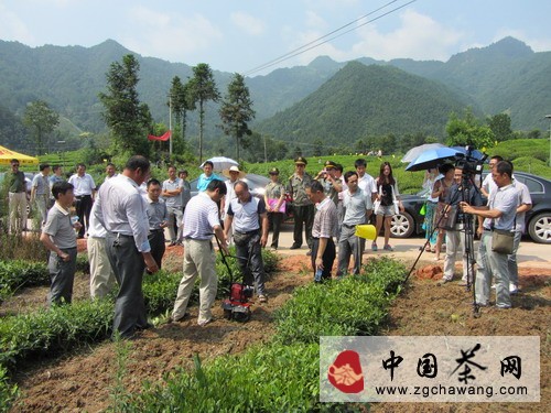中国茶网资讯:7月29日上午,由市农委、市农机局联合举办的茶叶机采暨茶园管理机械推广现场会在我县召开。市农委主任王武、市农机局局长毕灶明、副县长刘桃红及各区县农委分管主任或茶业局局长,各区县农机局分管局长、推广站站长及相关茶叶企业负责人共100余人参加了会议。