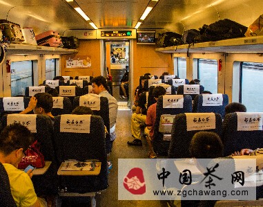 中国茶网资讯:8月5日上午,往返于福州南、上海虹桥的高速列车中,被冠名为"福鼎白茶号"动车组列车(D381、D382次)正式开启了其飞驰的旅程。车厢内LED显示屏首次闪出"欢迎乘坐福鼎白茶号动车组"信息,车上广播也响起"欢迎乘坐福鼎白茶号动车组"语音,每节车门上的"门贴"犹如福鼎白茶仙子站立于此欢迎着每位旅客的来临,与其开启一段茶香四溢的旅程。