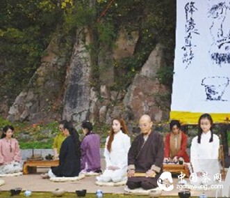 中国茶网资讯:“身是菩提树,心如明镜台,时时勤拂拭,茶道花自开”伴随着悠扬的琴声和乐人的轻声吟唱,南山流煎茶道学人重现降魔藏禅师煎茶场景,并敬奉香、花、茶。18日上午10时,首届中华煎茶道大会在泰山脚下灵岩寺召开,来自全国各地的茶友共聚灵岩寺,煎茶、坐禅共同回味那被岁月淡忘的味道,共寻煎茶道之根。