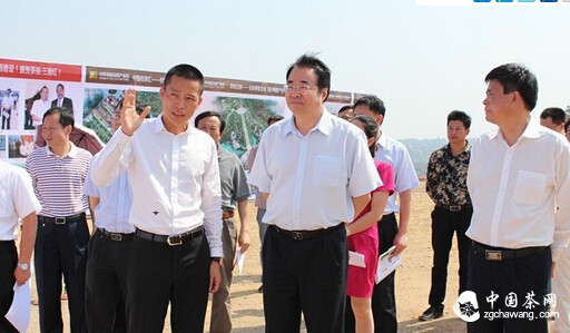 中国茶网资讯:10月20日上午,省委常委、宣传部部长许又声到茶陵县考察省重点建设项目---中华茶祖文化产业园,茶祖印象集团董事长黄成植向许又声部长一行详细汇报了项目建设及企业发展情况。