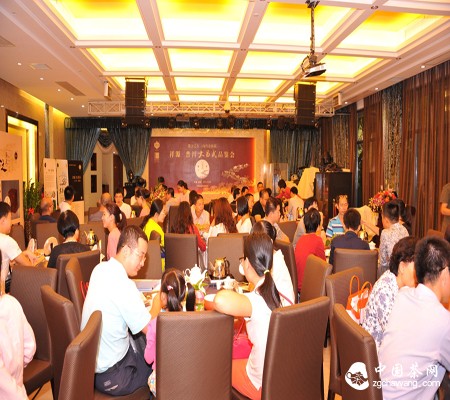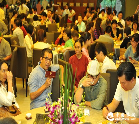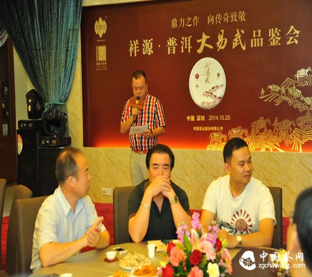 中国茶网资讯:2014年10月25日下午,一场别开生面的普洱茶品鉴会在深圳福田体育馆“大运凰庭”会所举行,这场茶会由祥源茶业主办,其渠道合作伙伴深圳浩林茶业、深圳泓茗堂文化公司承办。广东省茶文化促进会会长蔡金华,东莞市茶叶协会会长卢树勋,著名文化学者、深圳美术馆资深策展人孔晓冰,资深茶人萧潇,深圳茶艺、评茶老师、资深茶人熊艳军,顺意号茶业创始人张顺阶,知名作家、诗人梁东方老师等嘉宾参加了活动。近百茶友为数百年的易武茶传奇所吸引,聚集一堂,共品来自易武茶区的祥源茶年度普洱明星产品——“大易武”。