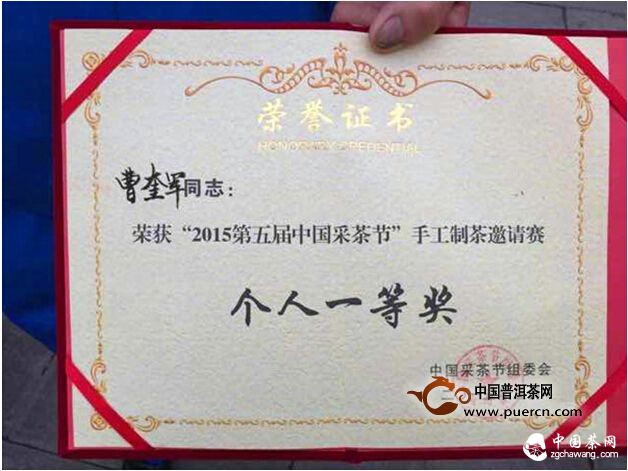 央广网四川成都2015年3月18日消息(隆敏马鲜)记者近日从四川省茶业集团股份公司获悉,中国好茶.天府龙芽非物质遗产第五代传承人曹奎军荣获第五届中国(成都)采茶节手工制茶邀请赛个人一等奖。