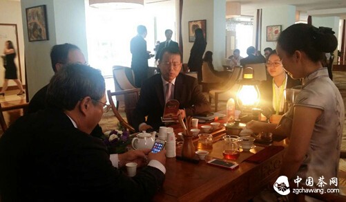 爱立信的中国区域副总裁赵钧陶先生莅临白沙溪展区品饮黑茶