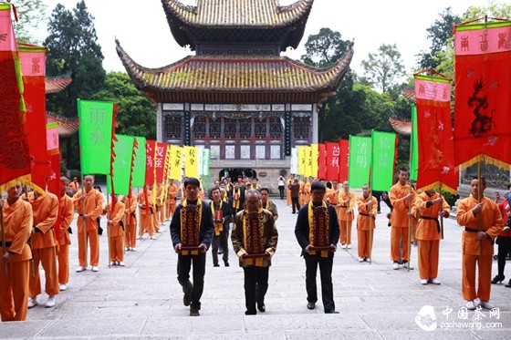 上午9:00,南岳衡山牌坊前,一支高举二十四节气旗的队伍分为两列,恭迎明前新茶的到来。当新茶在万众期待中到达后,省、市、区主管农事的领导手捧新茶,在南岳御街“天下牌坊”、寿涧桥、嘉应门进行交接,双手捧至南岳大庙正殿前坪。“醒狮点睛” “开坛献爵” “宣读祭文” “佛、道大师开光加持”等仪程一一举行,现场隆重祭祀分别代表“茶祖、茶神、茶圣”的炎帝神农氏、南岳茶神祝融氏、中国茶圣陆羽的神位,场面庄严肃穆,浓厚的南岳地域和文化特色扑面而来。