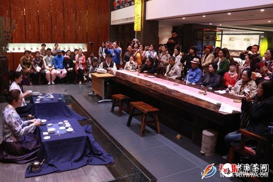 当天,研讨会成员在福鼎八中接受简单的欢迎仪式后,来到福建品品香茶业有限公司的河山基地参观,了解了高山白茶原生态有机环境,以及福鼎白茶的生产流水线。接着来到中国白茶文化体验馆,开展中韩茶艺交流,中韩两国的茶艺师精湛的茶艺表演,赢得在场的嘉宾热烈的掌声和赞许。