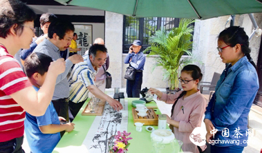 在现场,记者还看到来自韩国、美国、蒙古国、英国等地的茶艺互动区。