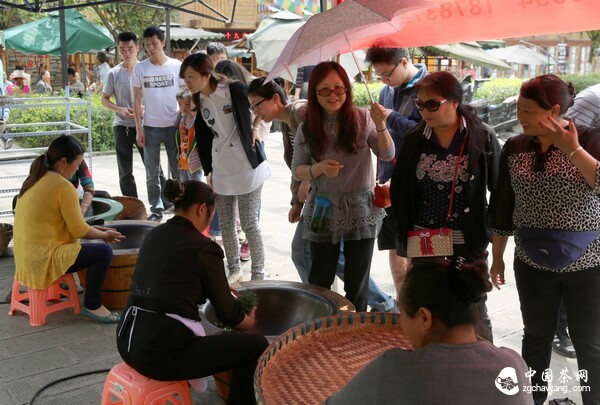 游客们对二村沟大岩洞村的手工茶赞不绝口姚红伟告诉记者,手工茶的外形和色泽虽没有机制茶看上去匀整,但其身骨重,手感柔,更好地保持了茶叶原有的天然风味,滋味纯厚甘爽,色、香、味都要比机制茶高出许多,价格也比机制茶要高,很深受茶客青睐。很多游客来到水磨镇,对手工制茶很感兴趣,现场品尝了手工茶,觉得味道也特别好,所以现场销售情况也比较好。