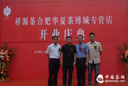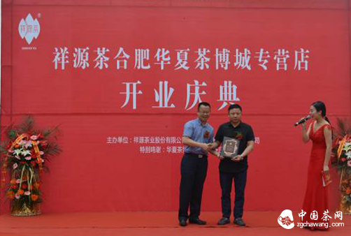 2015年5月28日,祥源茶合肥华夏茶博城专营店喜庆开业,祥源茶业董事长邓增永、副总经理吴锡端,华夏国际茶博城副总经理罗沛浩,安徽岁真茶叶科技有限公司总经理朱海涛,安徽绿神草茶叶有限公司董事长叶良玉等各位茶行业同行人士及来自其他行业的茶友参加了开业仪式,总经理邓增永为专营店总经理郭斌颁发授权牌。