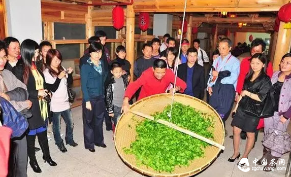 国家级非遗传承人魏月德正在现场演示安溪铁观音制作技艺