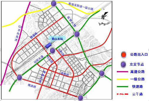 黄山北站位于徽州西溪南,是京福铁路、黄杭铁路、皖赣铁路复线的联结点,京台高速、杭瑞高速、黄祁高速、屯婺高速的交汇处,毗邻黄山风景区,距离屯溪国际机场仅7公里,是徽州南部城镇群的重要节点,建成后将成为徽州、乃至皖南最大的综合交通枢纽。