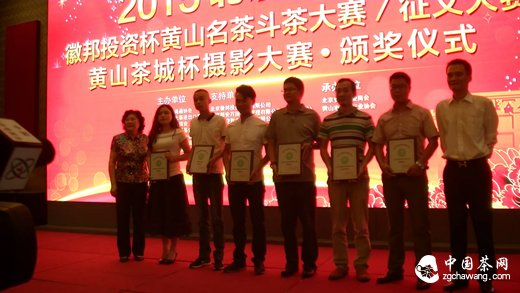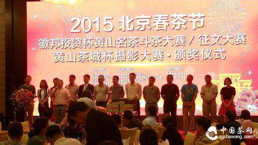 中国茶网讯:6月19日,以纪念黄山太平猴魁、祁门红茶荣获巴拿马金奖100周年,促进安徽茶产业持续健康发展为主旨,徽茶春茶系列主题活动2015北京春茶节“徽邦投资”杯黄山名茶斗茶大赛、征文大赛暨“黄山茶城”杯摄影大赛颁奖典礼在北京市西城区广安门外希尔 顿酒店举行。