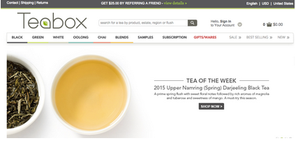 用户在 Teabox 的网站上购买茶叶时,可以通过种植园、发芽时间、品种(红茶、绿茶、印度香茶、乌龙茶)、克数等选项进行个性化采购。根据消费记录和算法,Teabox 会向用户智能化推荐 TA 可能喜欢的茶叶。如果你信任 Teabox 的"品位",也可以直接参与订阅服务,模式和按月订购化妆品的Birchbox很像。