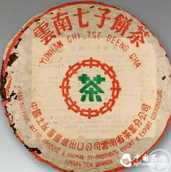 黄印七子饼,产生于五十年代末至七十年代中期,是云南七子饼的一个里程碑,同时也是现代拼配普洱茶工艺的始祖。1959年,因侨销茶停产的缘故,中茶公司把茶饼的名称从“圆茶”改为“七子饼茶”(即“中茶牌圆茶”改为“云南七子饼茶”),生产单位也从“中国茶叶总公司云南省分公司”改为“中国土产畜产进出口公司云南分公司”。