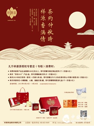 又是一年中秋到,良辰美景,每逢佳节倍思亲。中秋节送月饼、吃月饼是普遍的节日礼俗,但是随着健康理念越来越受到消费者的推崇,茶叶在节日礼品的市场上也越来越受到欢迎。中秋吃月饼,好茶来相伴。作为一家专业化的高品质茶叶礼品及相关服务商——祥源茶,兼顾传统与健康,2015年再次为中秋佳节量身定制了多款中秋礼茶,受到了市场上消费者的广泛青睐。
