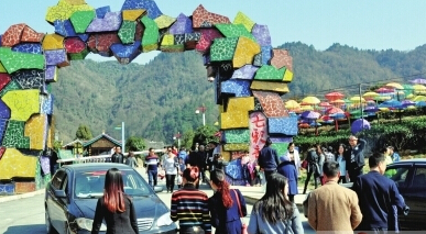 图为日前游客在湄潭七彩部落景区游玩