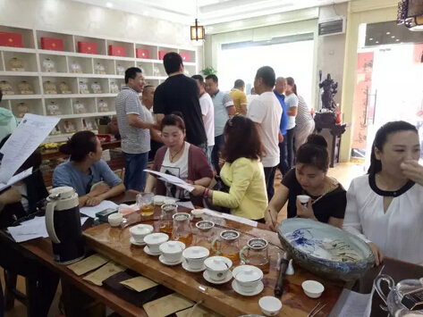 在简短而热烈的歌唱琴艺表演及店长致辞之后,品鉴会正式开始。此次易武斗茶会明星茶全国品鉴会,祥源茶为大家倾情奉上了来自普洱名山头的2016年新茶,包括倚邦、革登、莽枝、蛮砖、攸乐五大茶山以及来自易武七村八寨的珍稀茶品,20款名山名(村)寨茶一经亮相,便引得现场惊叹连连!
