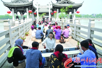 昨天上午,参加“海丝沿岸国家主流媒体看广东”系列活动的国内外媒体记者及嘉宾在广济桥上细品潮州茶艺精华,领略中华传统文化。