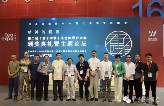 2016春季广州茶博会5月26日开幕!第二届『君子四雅』茶空间设计大赛十强最终以实景搭建再决高下,大赛颁奖典礼暨主题论坛下午如期在16.2中华品牌馆会议室隆重举行。茶博会组委会领导、评委嘉宾、参赛者、企业代表行业和大众媒体,以及对茶文化有着浓厚兴趣的各界人士超过150人亲临现场,听取评委代表公布大赛结果,共同探讨茶空间所营造的东方美学生活及未来发展方向。