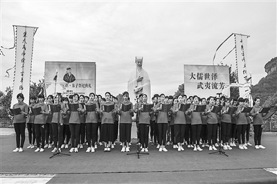 9日,庄重而简朴的朱子祭祀典礼观摩仪式在武夷山中华茶博园内举行。来自闽北朱子故里7个县市代表、闽北朱子后裔代表和武夷山市社会各界人士代表近300人参加此次活动。