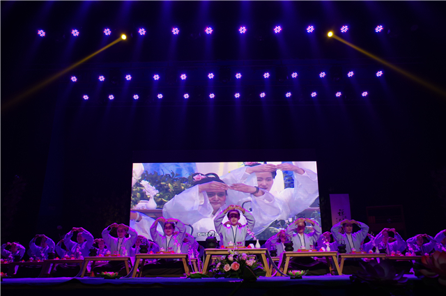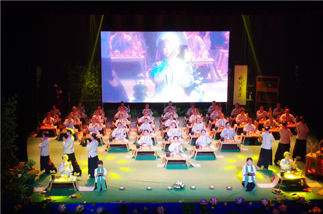 经过一天的集中练习,三日禅的学员们登上正觉大讲堂,为佛商禅修班学员以及居士、义工们,展演禅修茶道与手印舞。优美的禅乐禅诗、整齐划一的动作、静谧的禅修意境……禅意浓浓的禅修茶道,令观众们恍若置身仙境。
