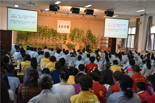 在教授师的带领下,学员们有了一次难忘的“博山正觉寺建寺回顾展”的寺院巡礼。通过图片、实物、影音资料,大家了解到正觉寺14年的建寺历程:从一片荒山,到初具规模,到现在的庄严恢宏、气势磅礴的佛教建筑群。大家从正觉寺14年的建寺历程中,感悟到了自己应该如何做事,如何修行。