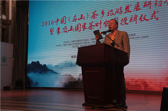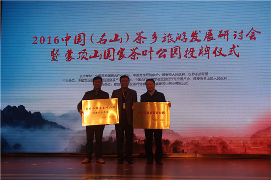 四川新闻网雅安10月17日讯(叶正博 许玉芳 郑佳洁 文/图)10月15-16日,2016中国(名山)茶乡旅游发展研讨会暨“蒙顶山国家茶叶公园”授牌仪式在雅安市名山区茶马古城隆重举行。本次研讨会由中国农业国际合作促进会茶产业委员会、中国合作经济学会旅游合作专业委员会、雅安市名山人区民政府共同组织。