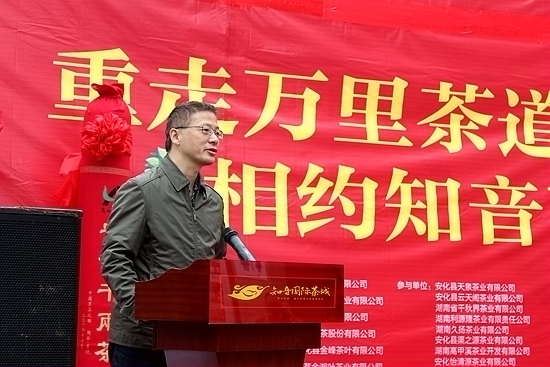 上午9时,活动组车队在武汉市汉阳区主街道进行巡回宣传。10时正式在知音国际茶城举行主题活动,在精彩的暖场表演中拉开了活动序幕,湖北省农业厅领导,武汉市文化局领导,武汉市“万里茶道”申遗办领导,湖北陆羽茶文化研究会领导,湖北五祖寺法师,武汉市茶叶协会,知音国际茶城等领导、专家、学者;以及安化县委县政府领导,安化县茶产业茶文化开发领导小组领导等出席本场活动。湖北陆羽茶文化研究会石爱发会长致欢迎辞,安化县茶产业领导小组副组长、原县委常委、宣传部长林玲发表致辞……,武汉申遗办负责人发表讲话……。