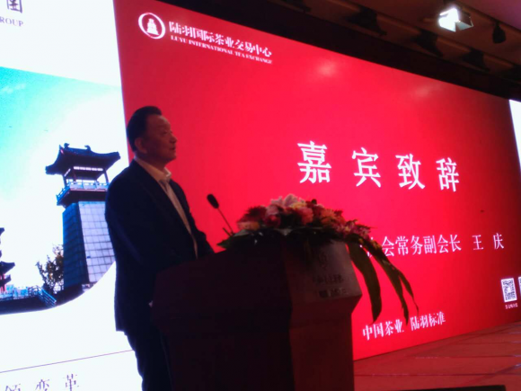 图一:中国茶叶流通协会常务副会长王庆为活动致开幕词