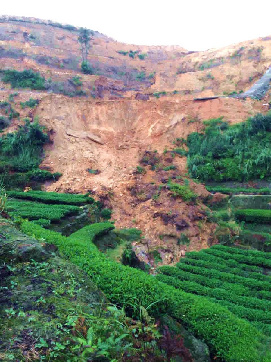 9月底,受台风“莫兰蒂”和“鲇鱼”影响,安溪县西坪镇茶叶基地,山体滑坡,茶园损失严重。