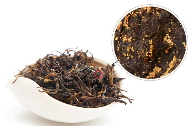 金花,是一种人体有益菌,学名“冠突散囊菌”, 色泽金黄,最早发现长在千年灵芝上。茶叶长出金花难得可贵, 素有“茶中黄金”之称。金花普洱的珍贵与难得!