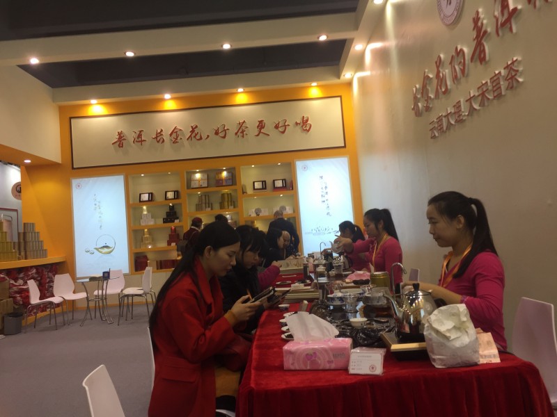 金花普洱参展广州茶博会之前,就已经引起茶界人士的关注。展会开始第一天金花普洱展馆很有人慕名而来,去品饮茶汤,去观赏茶上金花,与工作人员交谈,成了众多展馆中最热闹的地方。