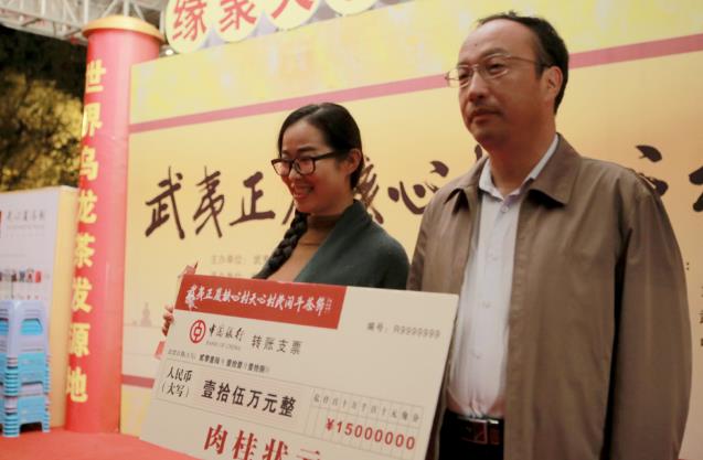 (武夷山市委书记马必钢为肉桂状元颁奖)