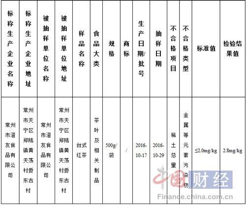 本期发布的抽检信息涉及乳品及 乳制品 ,餐饮食品,炒货食品,食用 农产品 ,酒类,冷冻饮品,方便食品,糖果制品等8大类,共计1059批次,发现不合格样品1批次。不合格样品为标称常州市澄友食品有限公司生产的台式红茶,不合格项目为稀土总量超标。