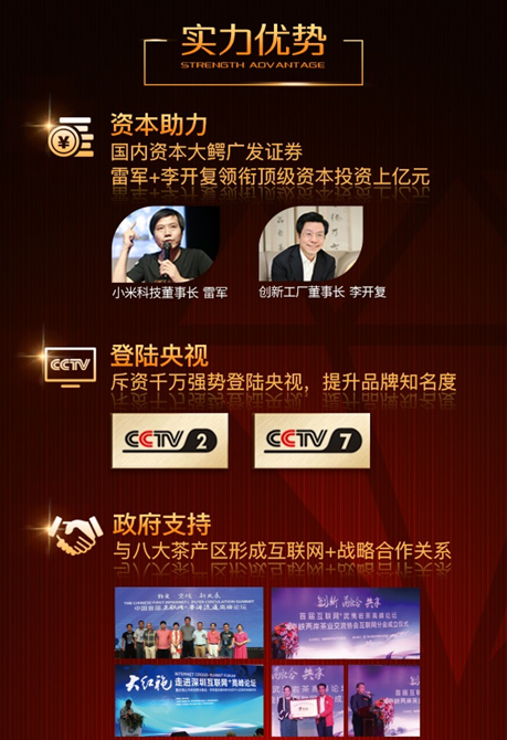 自茶行业吹响“互联网+”的号角,经过六年的不断深耕探索,由雷军、李开复领投的互联网产地茶直供交易服务平台——茶帮通,运用互联网思维成功打造出以“产地茶、产地价”为理念的B2B+O2O的商业模式。而在彻底打通线上平台与终端门店的经脉后,茶帮通开始加快全国线下门店的布局,12月18日,茶帮通城市运营中心武汉店即将盛大开业,率先打响茶帮通“百城千店”线下战略计划第一枪。