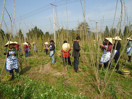 四川新闻网南充3月21日讯(张军)3月20日上午9时,阆中市宝马镇回龙村华家垭春意盎然,风和日丽, 来自该村的采桑茶姐妹们提着竹篮,戴着斗笠,系着花裙,面带微笑地认真听着宝马蚕桑专合社理事长袁正平宣布采桑茶竞赛活动比赛规则。随着一声“计时开始”,选手们飞快地走到桑园里,开始采摘嫩绿的桑芽。随着她们指尖的翻飞,竹篮里的桑芽也逐渐堆积起来。