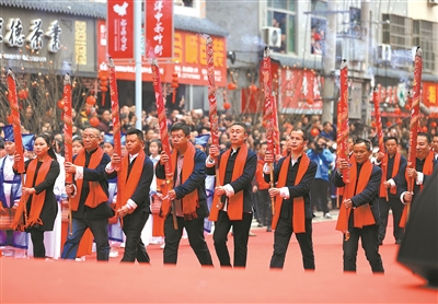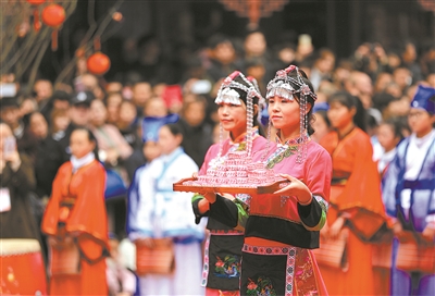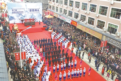 “开茶喽……”中午12点整,随着全场数千人一声声整齐的“喝唱”,古礼茶祭典礼正式开始。