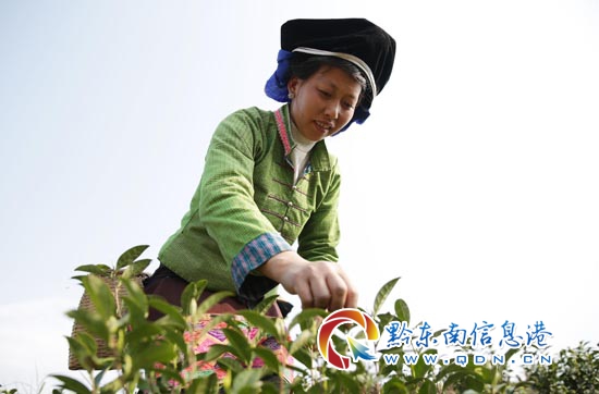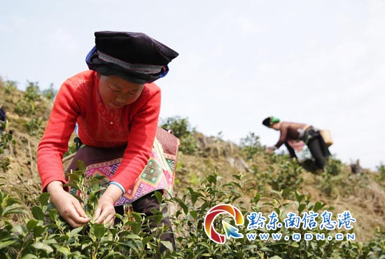 3月27日,贵州省丹寨县排调镇甲石村,苗族村民在采摘明前茶。