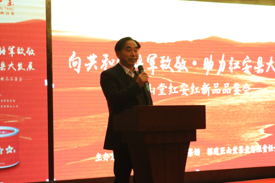 4月1日下午,“向共和国将军致敬•助力红安县大发展——正山堂红安红新品品鉴会”在湖北省红安县玺丽国际大酒店顺利举办。