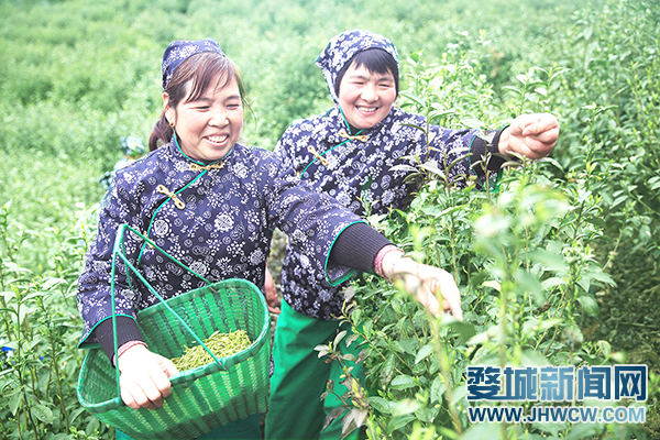 “手提着篮儿将茶采,片片采来片片香哟……”3月28日,在箬阳乡箬阳村的山头上,十几名采茶人伴着欢快的歌声和清新的茶香正忙着采茶,只见翠绿的嫩芽在指尖“飞舞”。