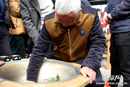 炒茶师傅现场炒制第一锅春茶。长城网 高琳哲 摄