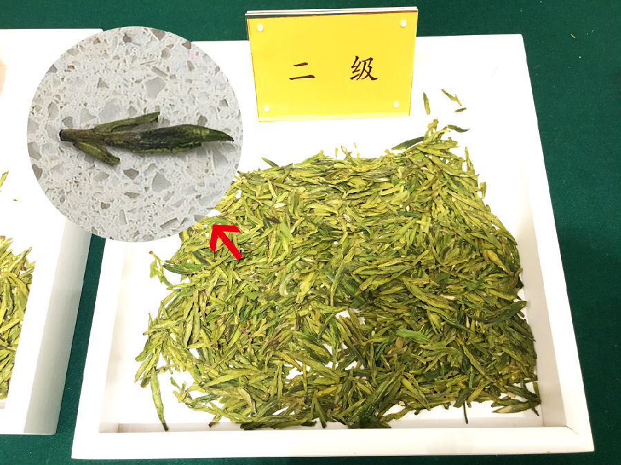 二级茶叶品质稍逊 一芽两叶的原料比不上特级的细嫩 颜色比特级略微暗沉一些