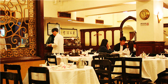 每天同一时间,夹着报纸趋入茶室,深咖色的木椅子,古旧的木吊扇,茶博士和企堂衣着讲究,白色对襟唐装衬上黑裤,和颜悦色拿着大水煲为客人添水。常供香片、六安、普洱、铁观音四款香茗,普洱最受茶客爱戴。