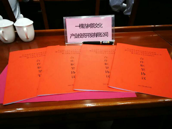 2017年9月18日,第三届普洱绿色发展论坛“市院合作暨招商引资项目协议集中签约仪式”在普洱举行。在此次论坛上,一棵古树茶文化产业投资开发有限公司正式与景谷傣族彝族自治县人民政府签约,作为当地重点招商引资项目,将在一棵古树茶长海基地建设生态庄园项目。